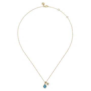 21K Yellow Gold Blue Topaz and Diamond Teardrop Pendant Necklace