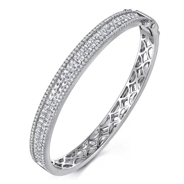 Classic 21K White Gold Diamond-Set Bangle