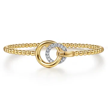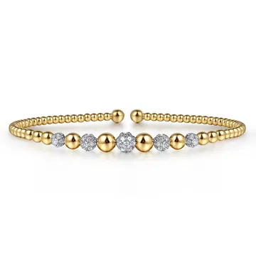 Experience timeless elegance with this Luxury 21K Gold Diamond Pave Split Bangle, crafted in stunning white and yellow gold. Designed with intricate Bujukan bead detailing and sparkling pave-set diamonds, this two-tone bracelet embodies sophistication and modern luxury.