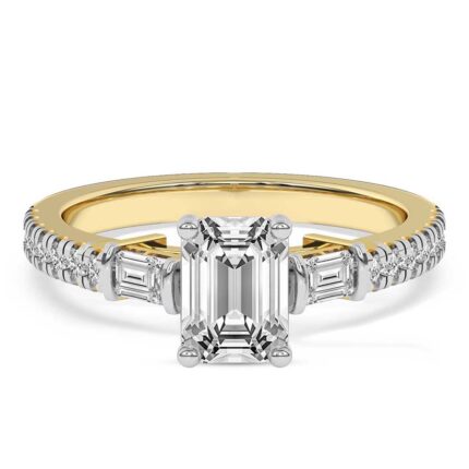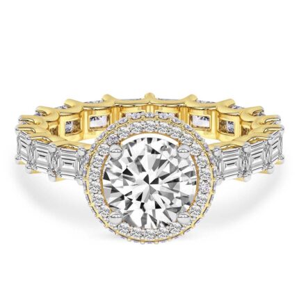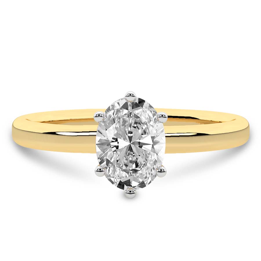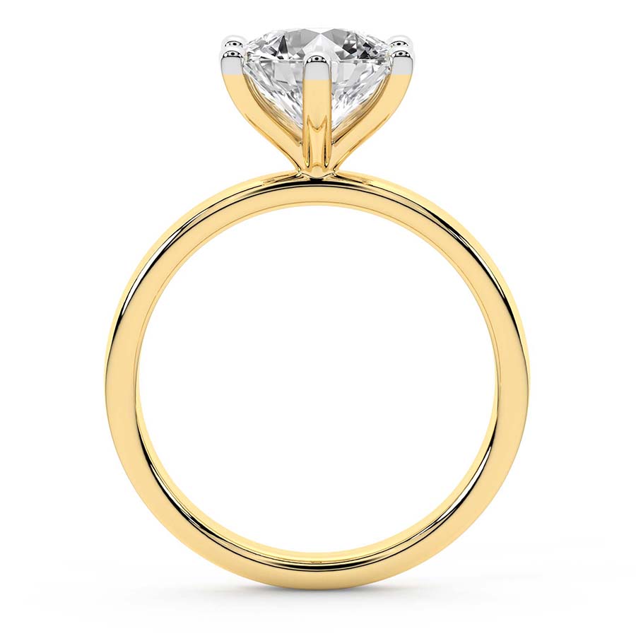 This classic 21kt yellow gold six prong 1.5mm setting gives maximum protection to the center lab diamond while allowing the entire lab grown diamond to be seen from all angles. Its sleek and polished design creates an understated elegance, a perfect complement to the diamond’s radiance. Like a sparkling constellation in the night sky, these six-prong lab diamond ring lights up any occasion.