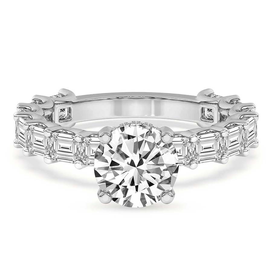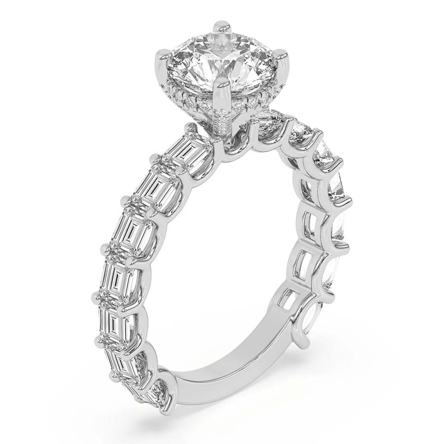 White Gold Giselle Side Emerald Lab Diamond Ring